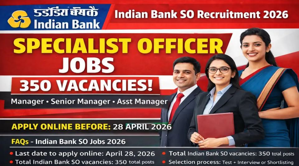 Indian Bank SO Recruitment 2026Vacancy Details Total Post : 350 |